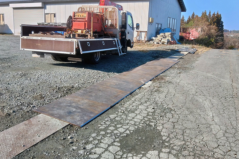 倉庫入口部∪字溝 敷板補強