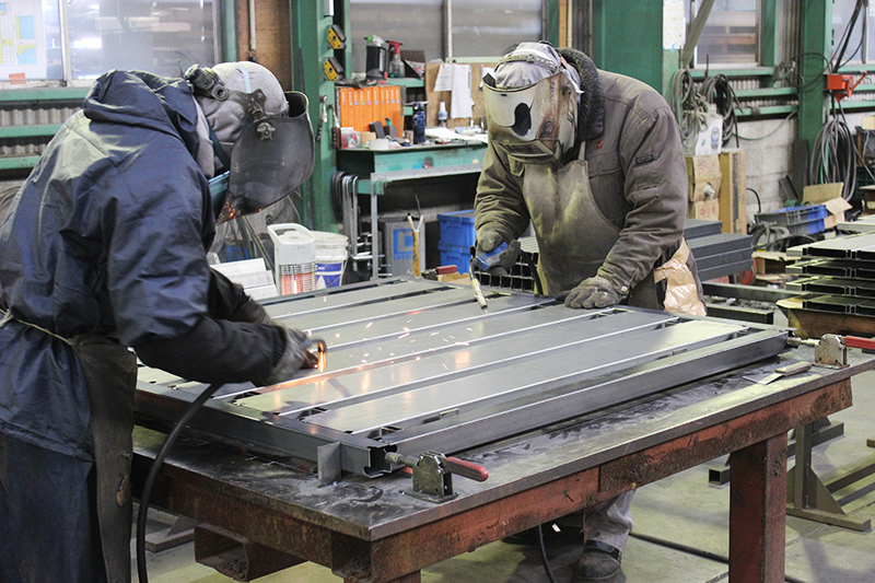 丸鋼を曲げてわっかにしたり、鉄板の折り曲げや穴あけ・組立の溶接など真剣な表情で取り組んでいました。
